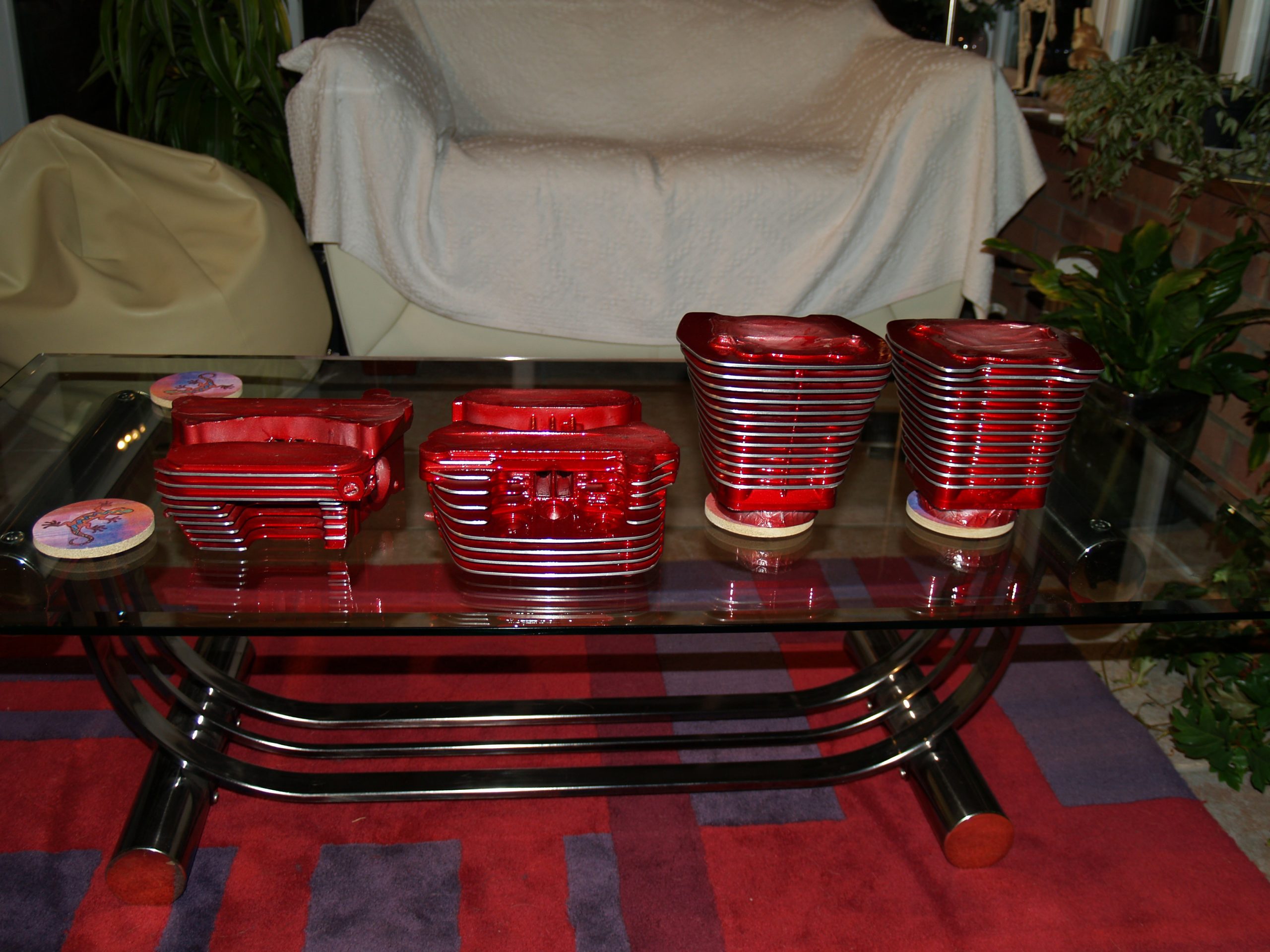 We don’t actually do the powder-coating ourselves but we use a reputable company called Aerocoat to get the work done, what we do is remove and prepare the parts that need to be powder-coated. The can be engine cases, rocker covers mudguards, frames, handlebars, switchgear, whatever you like.